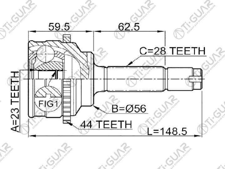 ШРУС наружный /наружний правый /левый /TI-GUAR для Mazda Capella 626 Telstar Cargo 1997-2002; 23*56*28; TG-6839Z44; (MA-039A44) GG012550X 0510039A44