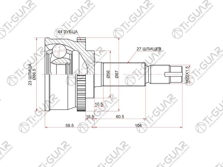 ШРУС наружный /передний правый /левый /TI-GUAR для Nissan Primera P12E 2003-2005 1.8L QG18DE; 23*56*27; TG-7476Z44; (0210076A44 NI-076A44) 39101AU075 NS76A44 JCT0039A